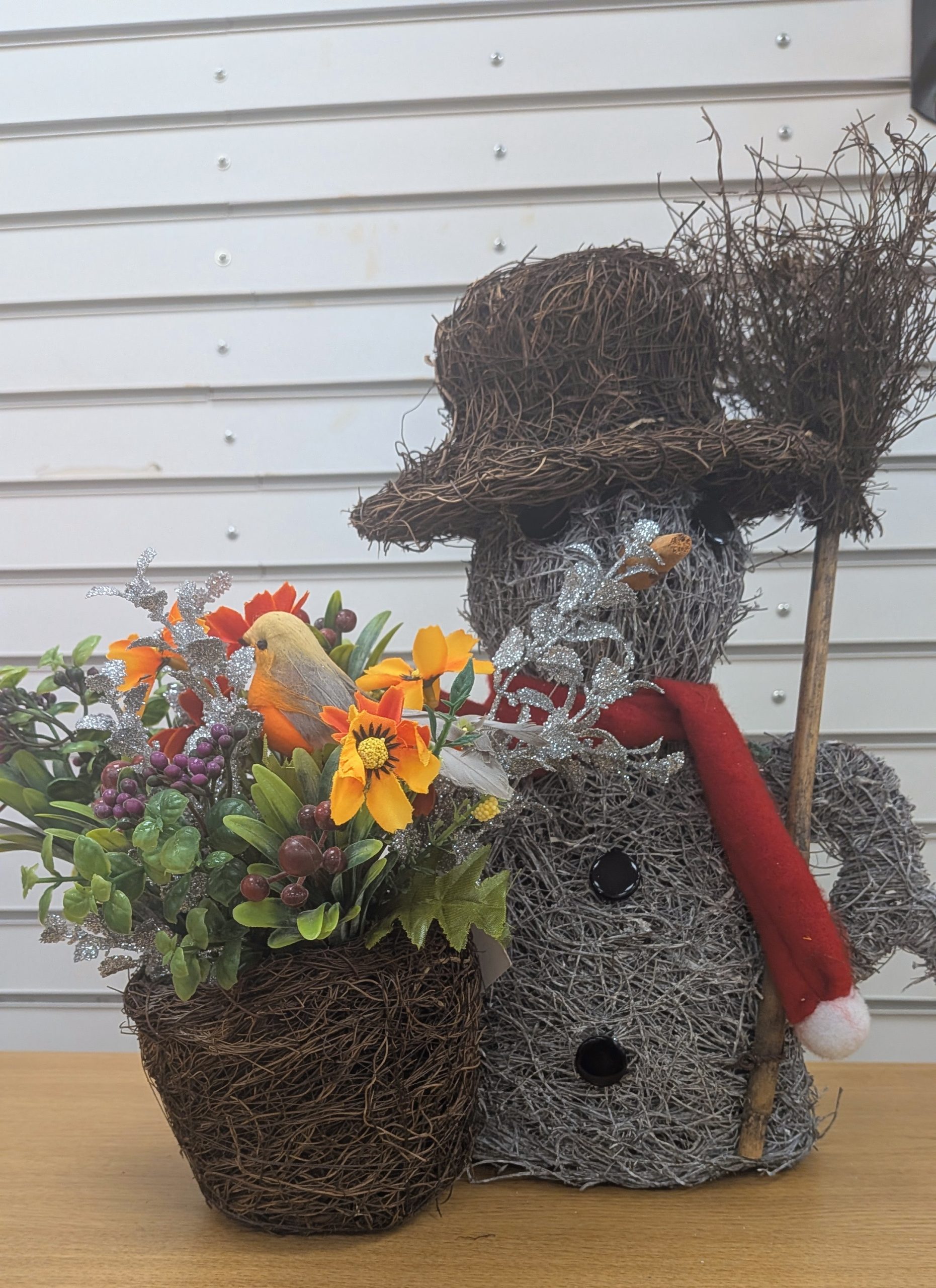 Snows with a basket of autumn/ winter flowers.. flowers may vary